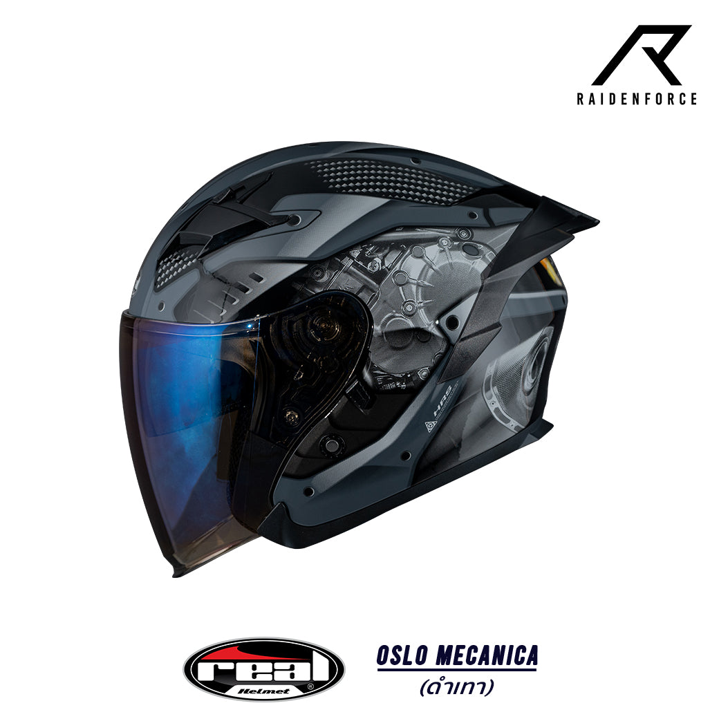 หมวกกันน็อค Real Helmet Oslo Mecanica สีดำเทา