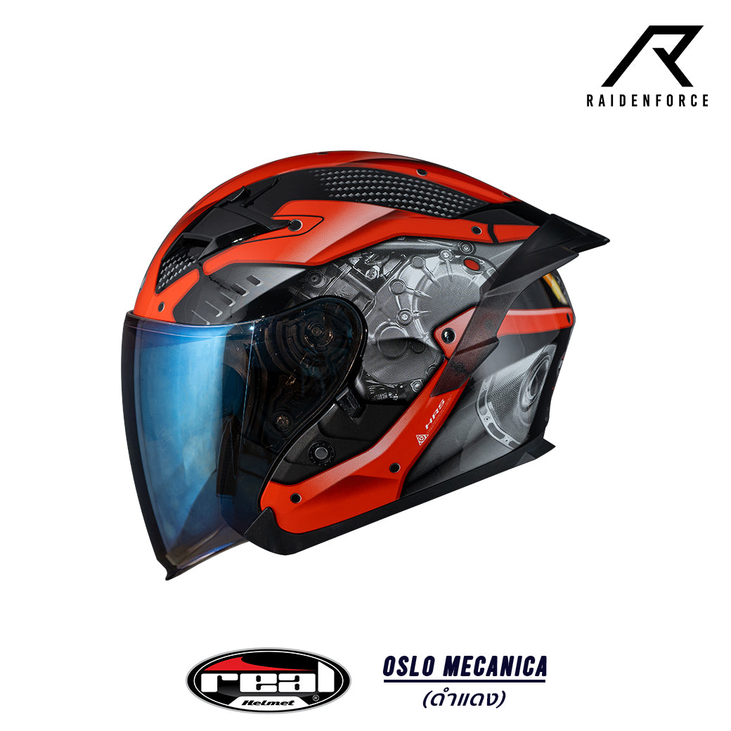 หมวกกันน็อค Real Helmet Oslo Mecanica สีดำแดง