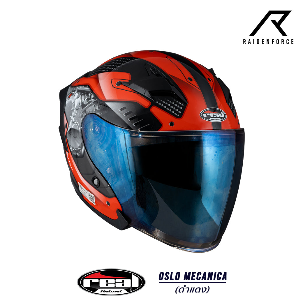 หมวกกันน็อค Real Helmet Oslo Mecanica สีดำแดง