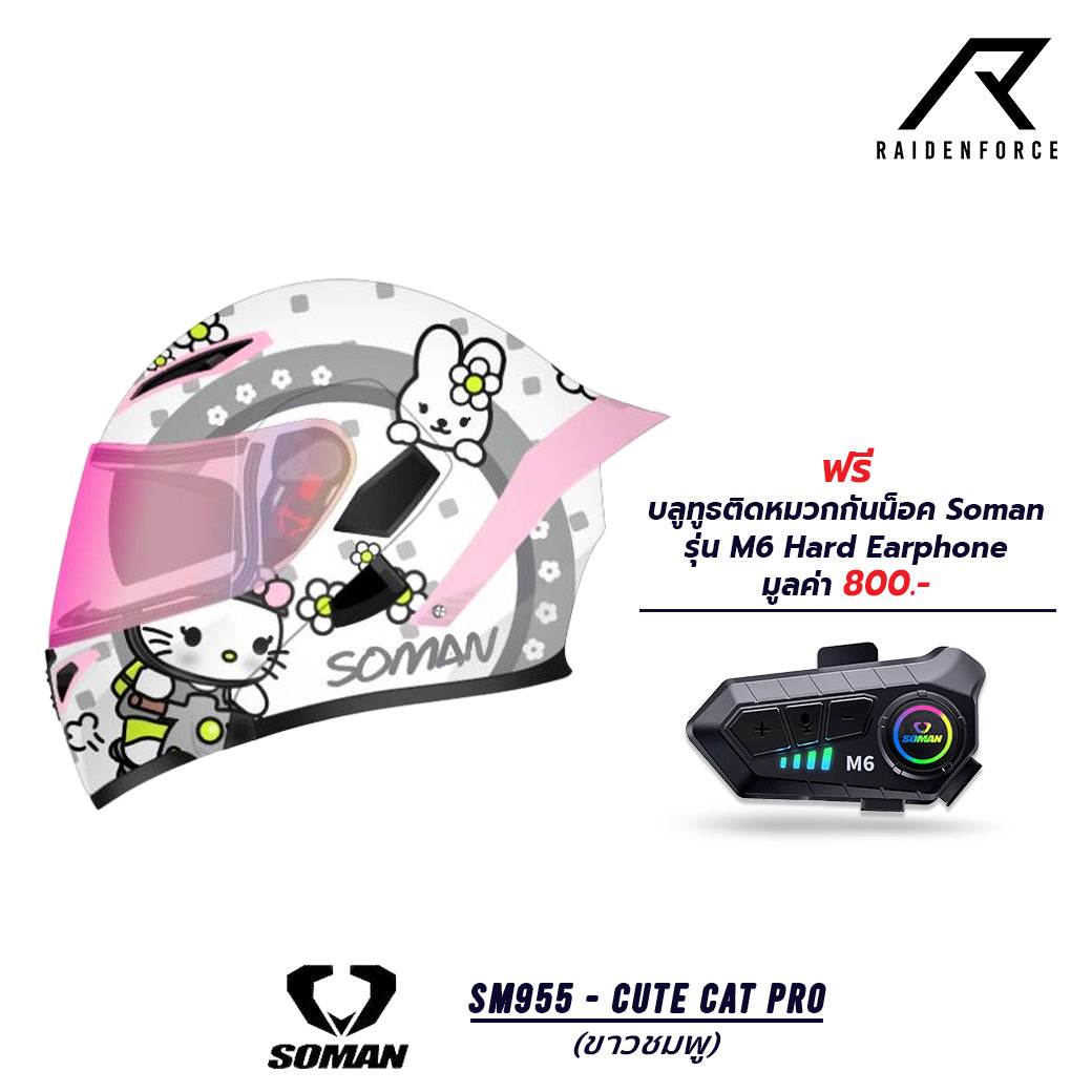 หมวกกันน็อค SOMAN - SM955 Cute Cat Pro ขาว/ชมพู