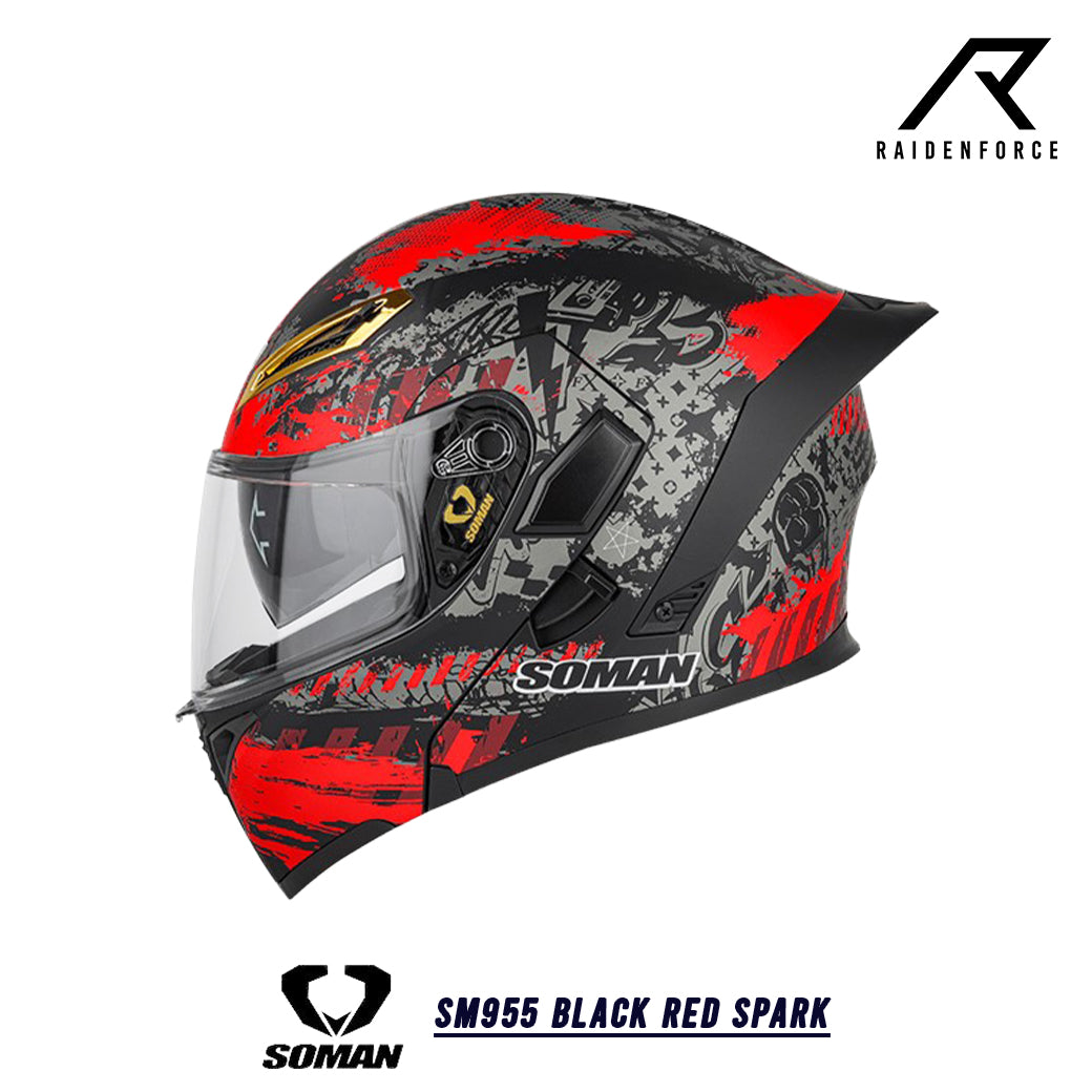 หมวกกันน็อค SOMAN - SM955 Black Red Spark