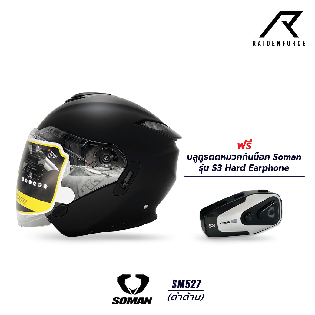 หมวกกันน็อค SOMAN - SM527 สีดำด้าน