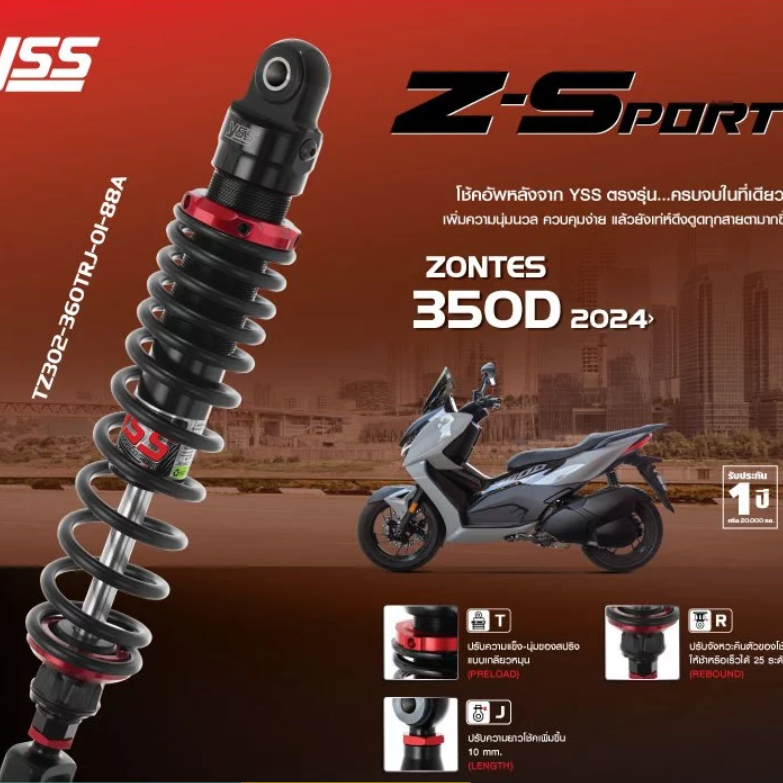 โช้ค YSS Z-Sport Zontes 350D'24 Black series สี ดำ/ดำ