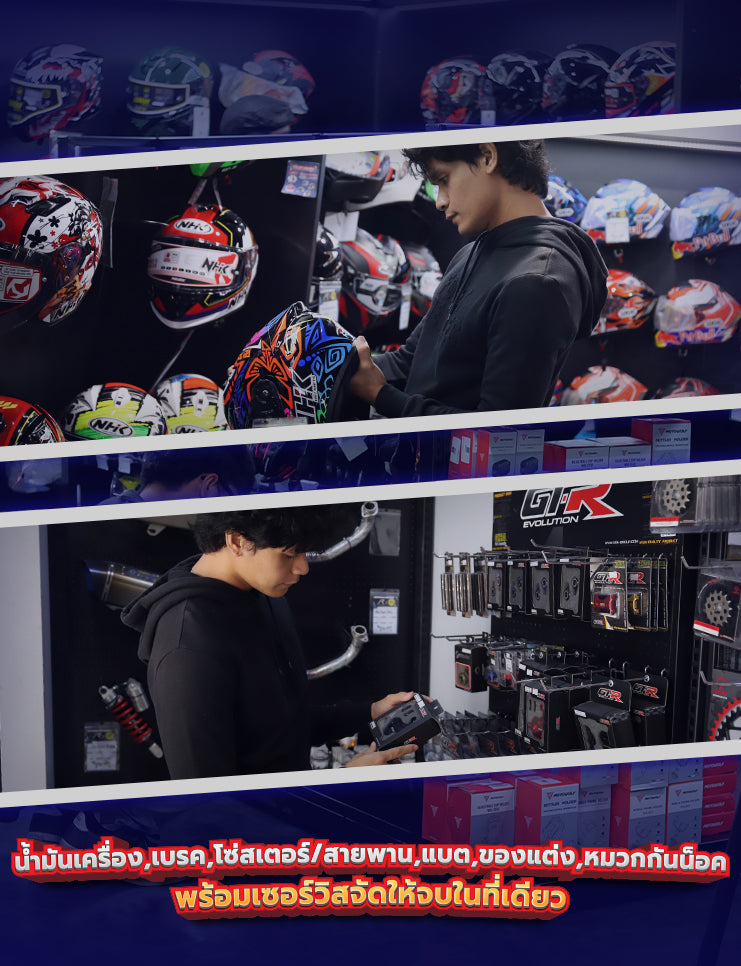 ศูนย์รวมสินค้าสำหรับรถมอเตอร์ไซค์ ตั้งแต่คลาส 100-1000CC. พร้อมเซอร์วิสติดตั้งที่ได้มาตรฐานจบในที่เดียว