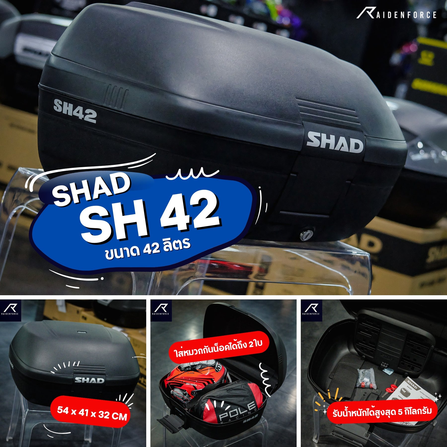 - สามารถใส่หมวกกันน็อคได้ถึง 2 ใบ (ขึ้นอยู่กับรูปทรง และไซส์หมวกกันน็อค)