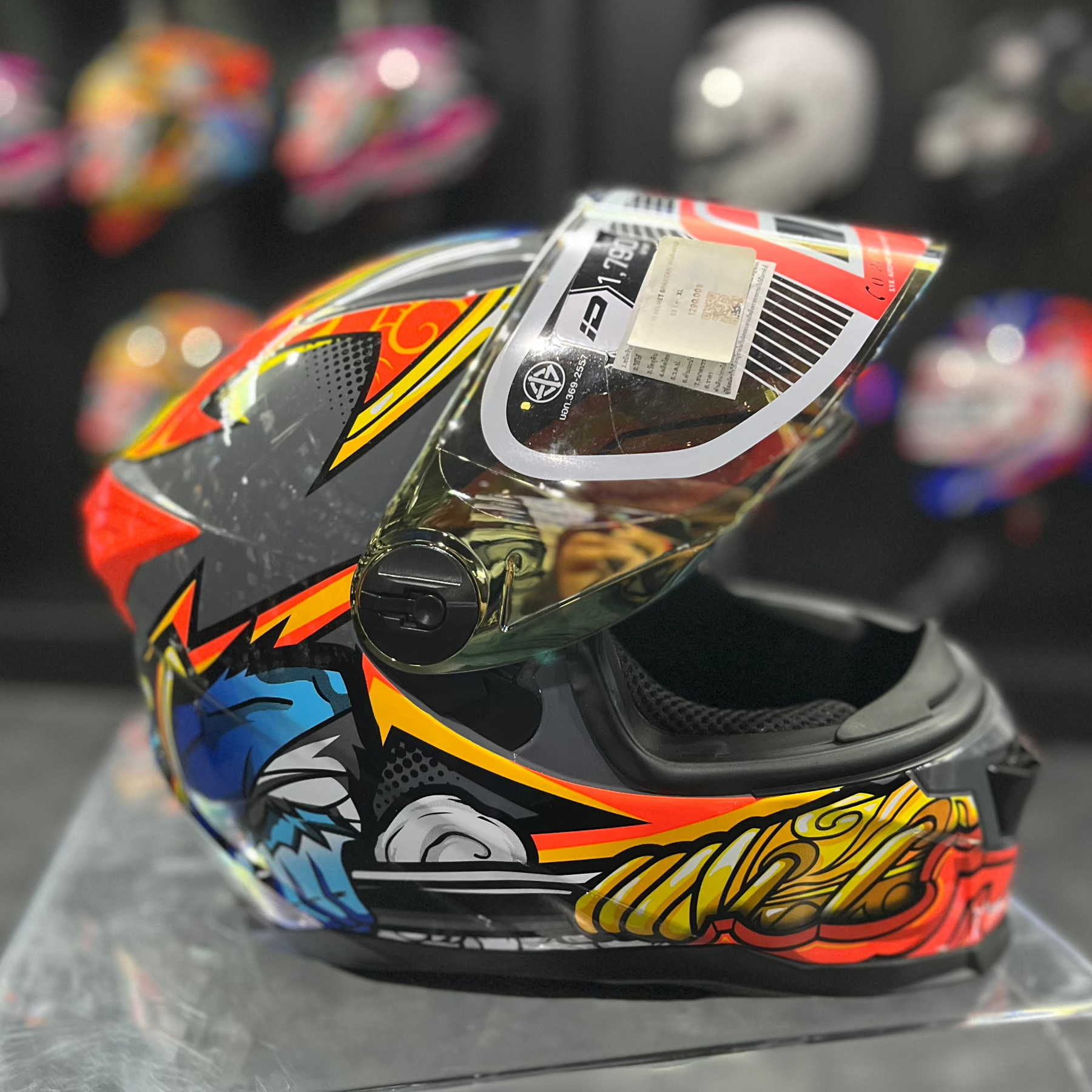 - แผ่นหน้าหมวกผ่าน ตัดแสงได้ 50 เปอเซนต์และป้องกันรังสี UV400 99%