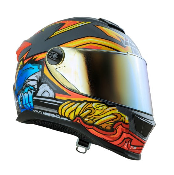 - แผ่นหน้าหมวกนิรภัยมุมมองกว้าง วัสดุ Polycarbonate เคลือบสีปรอทอิริเดียมทอง เคลือบกันรอยขีดข่วน