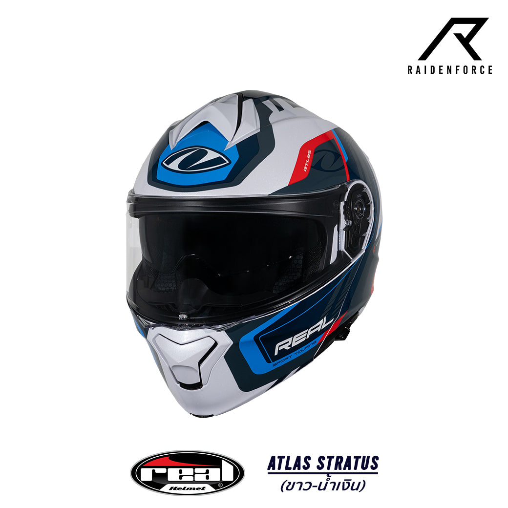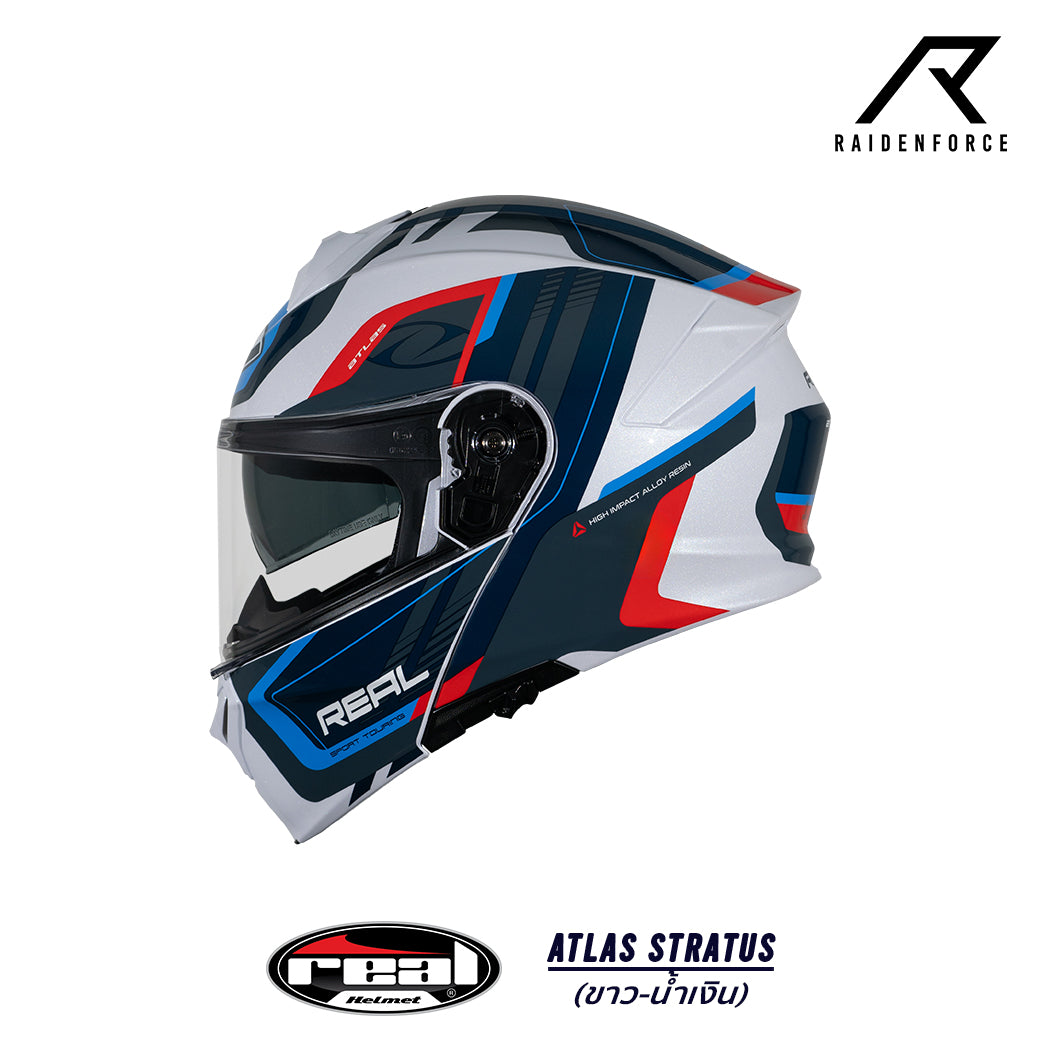 หมวกกันน็อค Real Helmet Atlas STRATUS สีขาว/น้ำเงิน