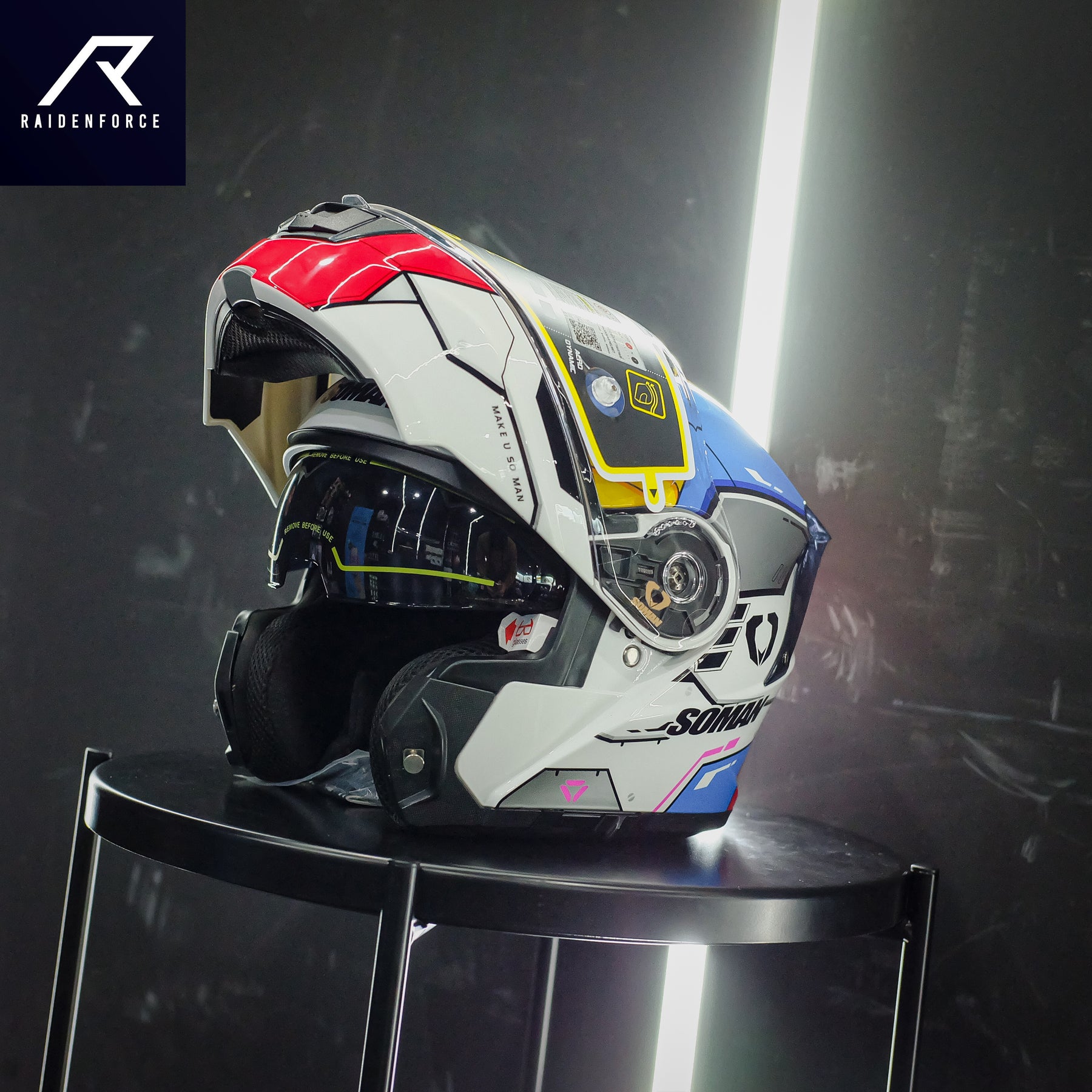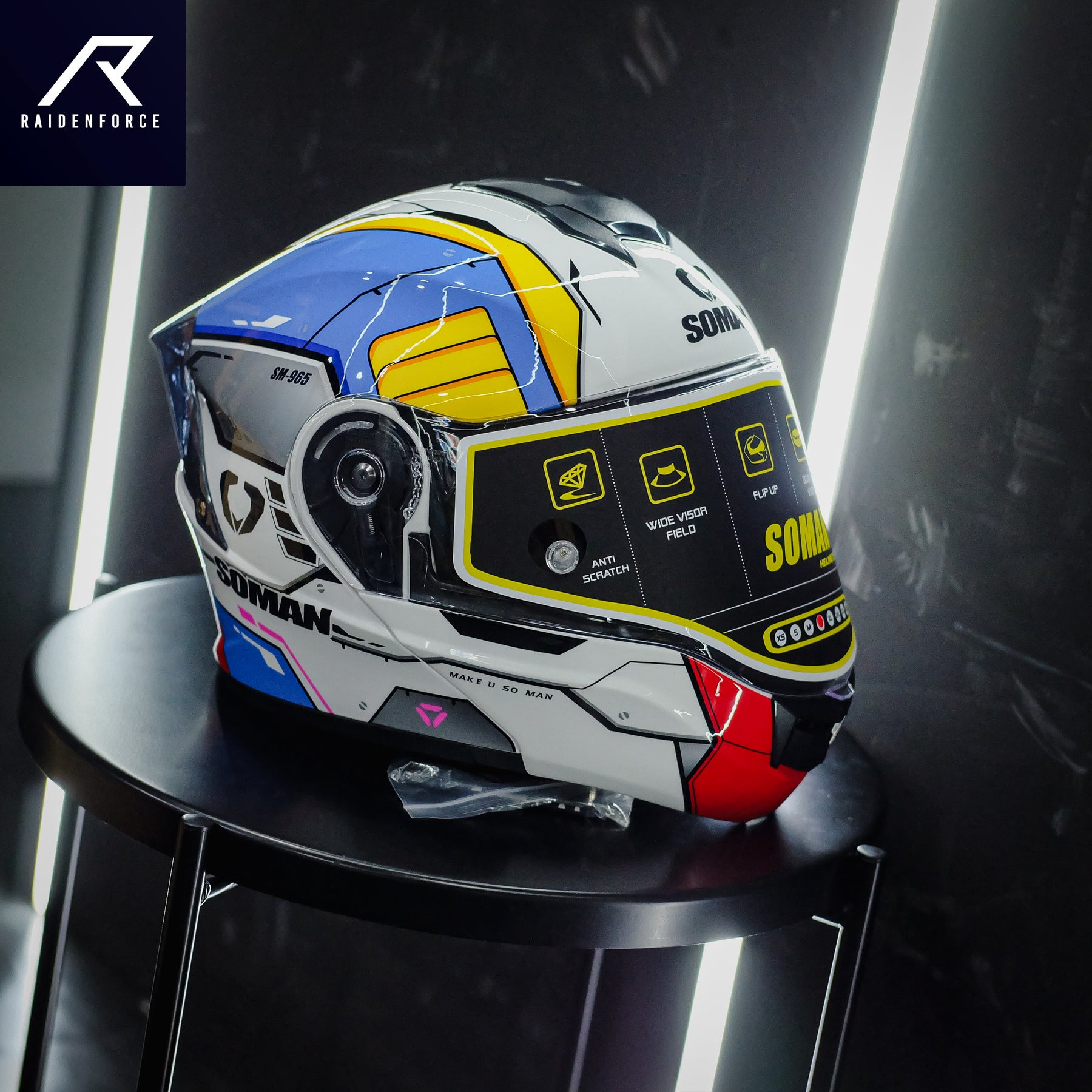 - สามารถยกคางได้และมีแว่นกันแดดสโมคดำภายใน